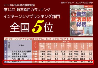 【2021年 インターンシップランキング 全国5位!】
